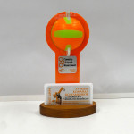 - Приз акриловый (статуэтка) на деревянном основании с объемной заливкой. Лазерная гравировка, УФ-печать.